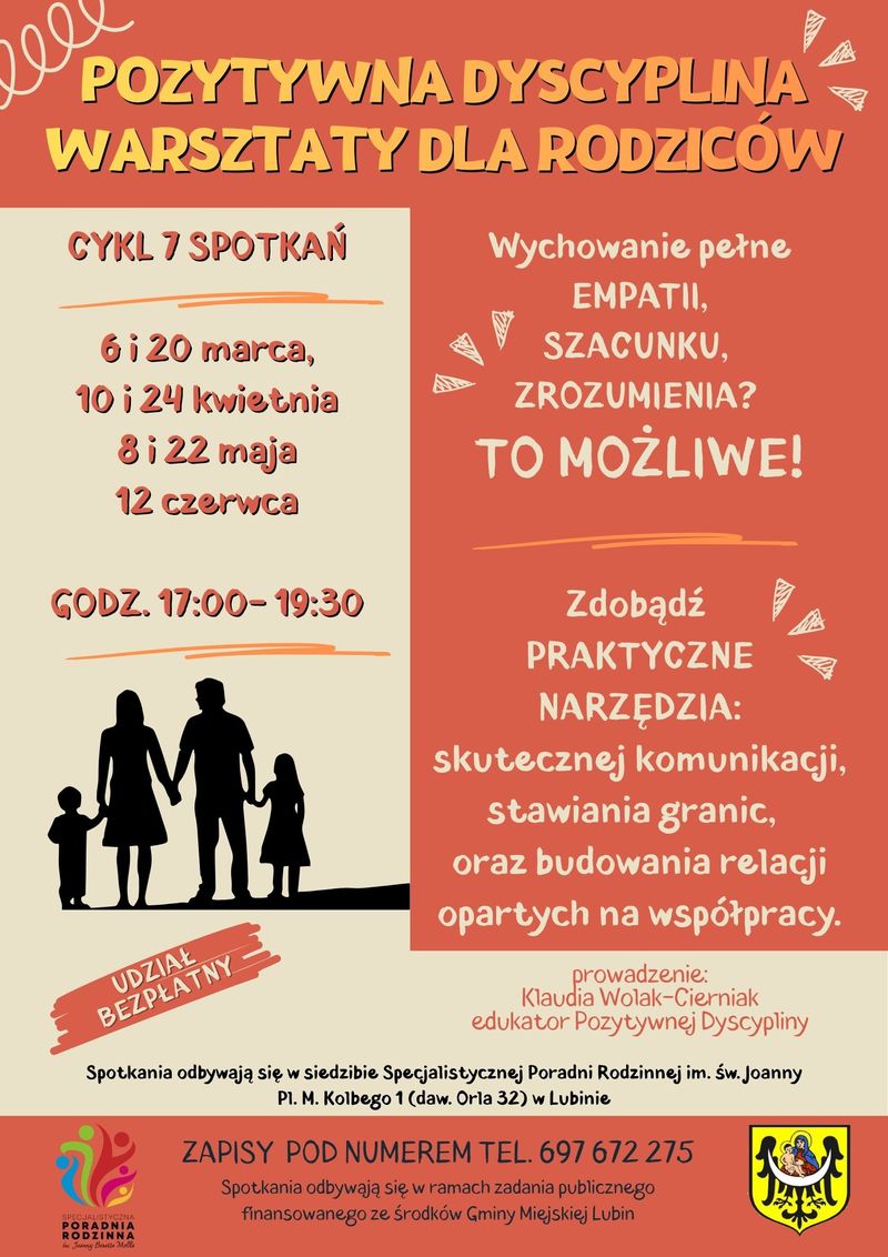 Specjalistyczna Poradnia Rodzinna im. św. Joanny Beretta Molla w Lubinie zaprasza na cykl warsztatów dla rodziców z pozytwną dyscypliną!