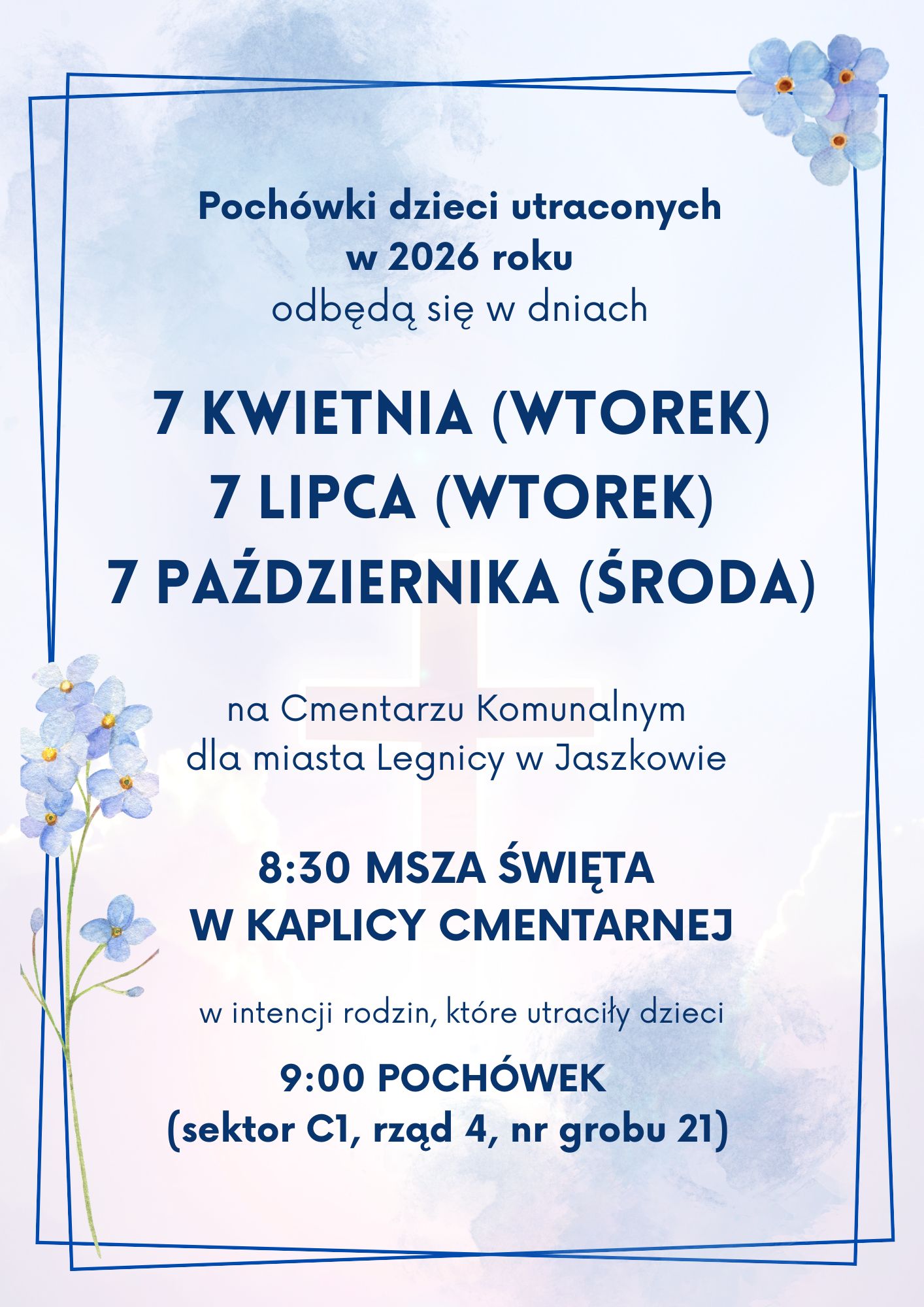 Zapraszamy rodziny, które zostały dotknięte stratą dziecka, jak również wszystkich, którzy pragną ofiarować modlitwę w ich intencji na mszę święte z pochówkiem dzieci utraconych.