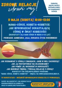 Udział w warsztatach jest bezpłatny – warsztaty są elementem projektu „Zdrowe relacje, zdrowi my!” realizowanego przez Parafię Matki Bożej Różańcowej w Kamiennej Górze, finansowanego przez Gminę Kamienna Góra.